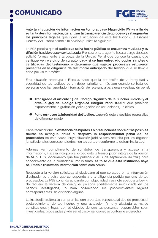 Rosero explicó que lo que ha circulado en redes o medios no corresponde al registro original custodiado en el proceso. De hecho, la propia Fiscalía ha señalado que ese material ha sido mutilado y alterado, lo que confirma que no es el testimonio auténtico, sino una edición fragmentada y manipulada con fines ajenos a la verdad procesal.