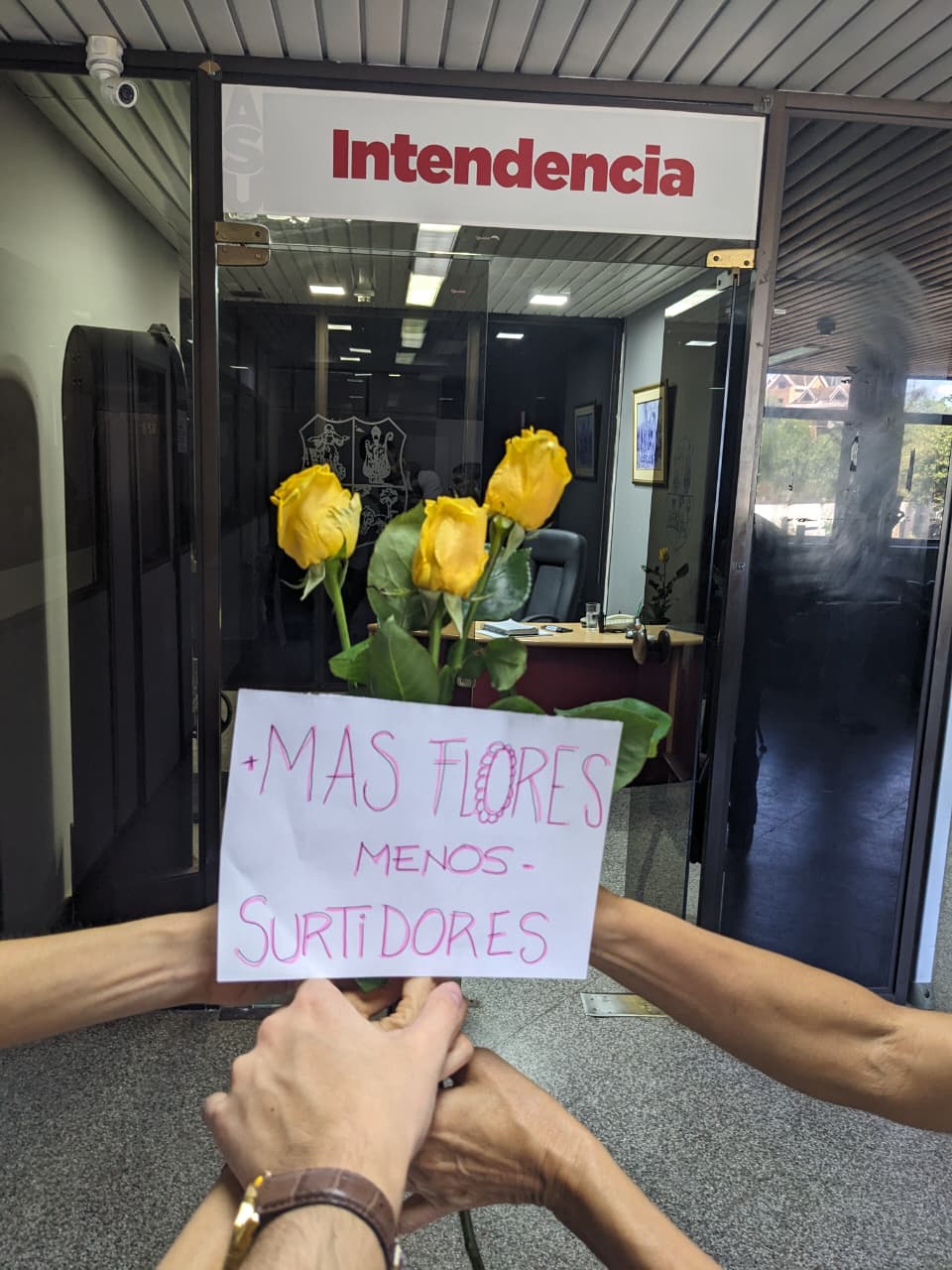 Desde este lunes los vecinos se instalaron en la municipalidad con la campaña “Más flores, menos surtidores”, recorriendo, piso por piso, detrás del expediente en cuestión.