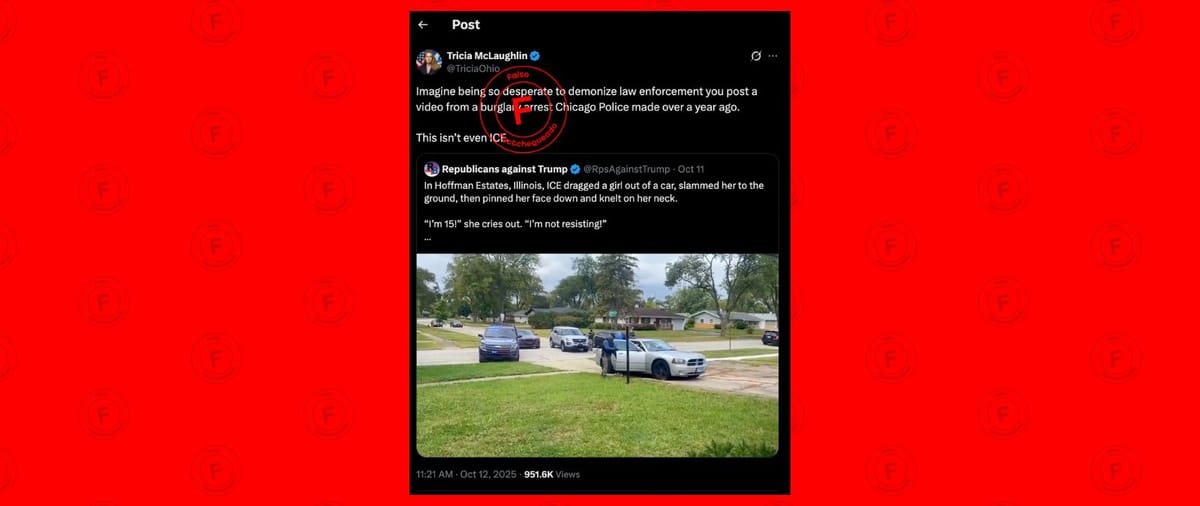 «Imagínense estar tan desesperados por demonizar a los agentes que publican un video de un arresto por robo que la policía de Chicago realizó hace más de un año», escribió McLaughlin el 12 de octubre en X. «Esto ni siquiera es ICE».